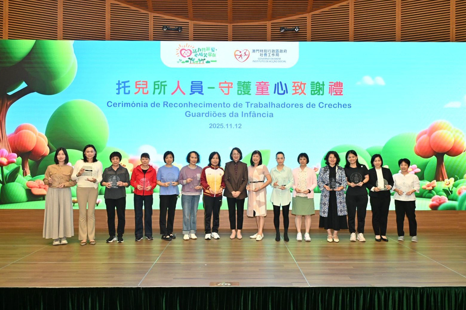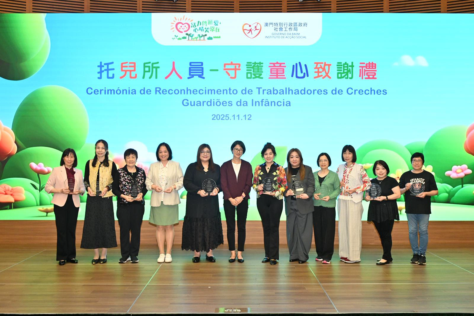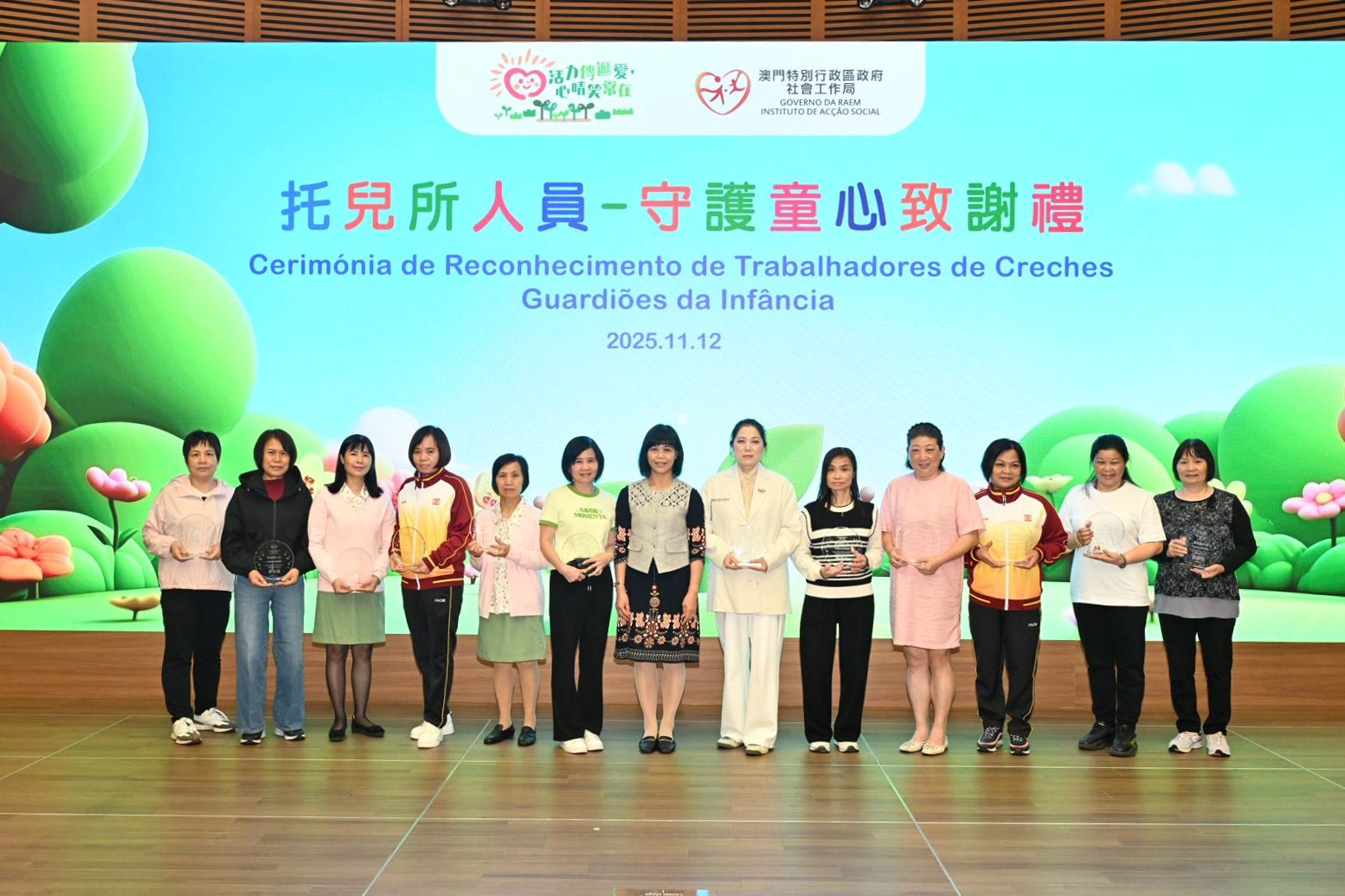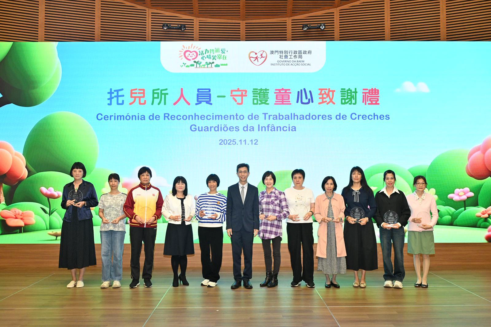社会工作局於11月12日假澳门科学馆会议厅举行“托儿所人员—守护童心致谢礼”,以“以爱守护,用心服务”为主题,向49名年资介乎15年至33年、获托儿服务机构认可的托儿所人员致送感谢状,以表扬相关人员多年来默默耕耘、用心守护幼儿成长的辛勤付出。致谢礼邀请了相关管理实体、托儿所代表约110人出席。
